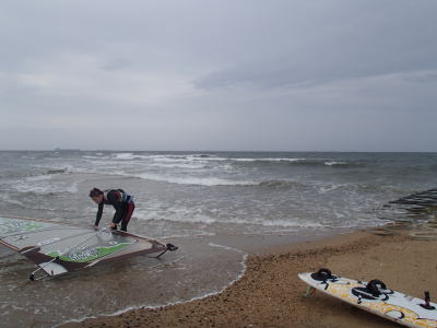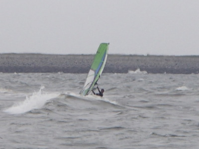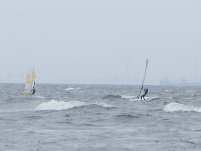 | 朝仕事終了時の11:00頃、 風は一気に上がりなんと数値は13メートル!! 吹いて来てもたみたいな(笑) その時に雨もパラパラときましたので、 こりゃ〜風は落ちるパターンだと勝手に決めつけてました(笑) 磯津へ…。12:30現着。 数値の割りに吹いていない…。 テンション上がらないけど5.4をセット。 風はどんどん上がってきてる♪テンションUP(笑) 13:00入水。風、めっちゃいい!!最高!!波ある〜♪ |