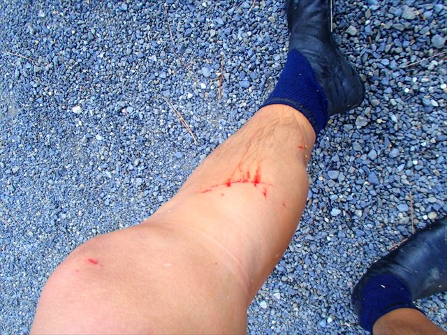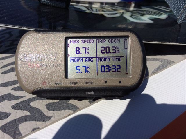 | 到着時、最高時速8.1キロ 距離9.97キロ 平均時速6.1キロ 動いた時間1時間38分です!! | 上陸時に刺の草にからまれ出血&ウェット引っかき傷(>_<) |