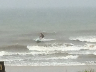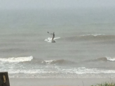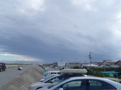 ←15時頃黒い雲が襲いかかろうとしている・・・。 これ見てサップ即終了です(笑) ↓岐阜の高山方面の集中豪雨で海も茶色に濁っている。 |