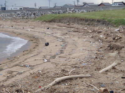 | ↑風が吹いてしまって(笑)完全に風波化してしまってる。 ↑台風11号の木屑 | |